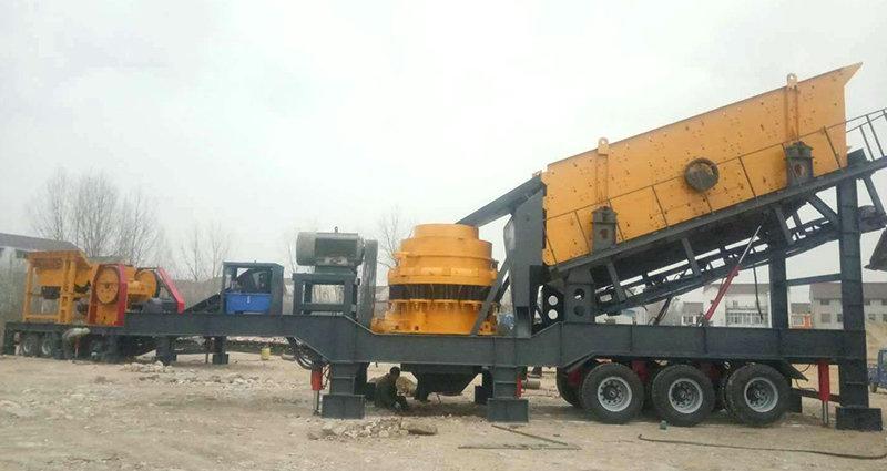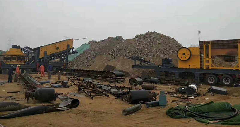 移動(dòng)式破碎站主破碎設(shè)備為破碎機(jī),物料經(jīng)給料機(jī)均勻輸送到破碎機(jī)內(nèi),被破碎機(jī)初步破碎以后由圓振動(dòng)篩構(gòu)成閉路系統(tǒng),實(shí)現(xiàn)物料的循環(huán)破碎,符合粒度要求的物料由輸送機(jī)輸出,從而達(dá)到生產(chǎn)目的。移動(dòng)式破碎站還可以根據(jù)實(shí)際生產(chǎn)需要去除圓振動(dòng)篩,而直接對(duì)物料進(jìn)行初步破碎,然后配合其他破碎設(shè)備進(jìn)行具體的操作,方便、靈活。
