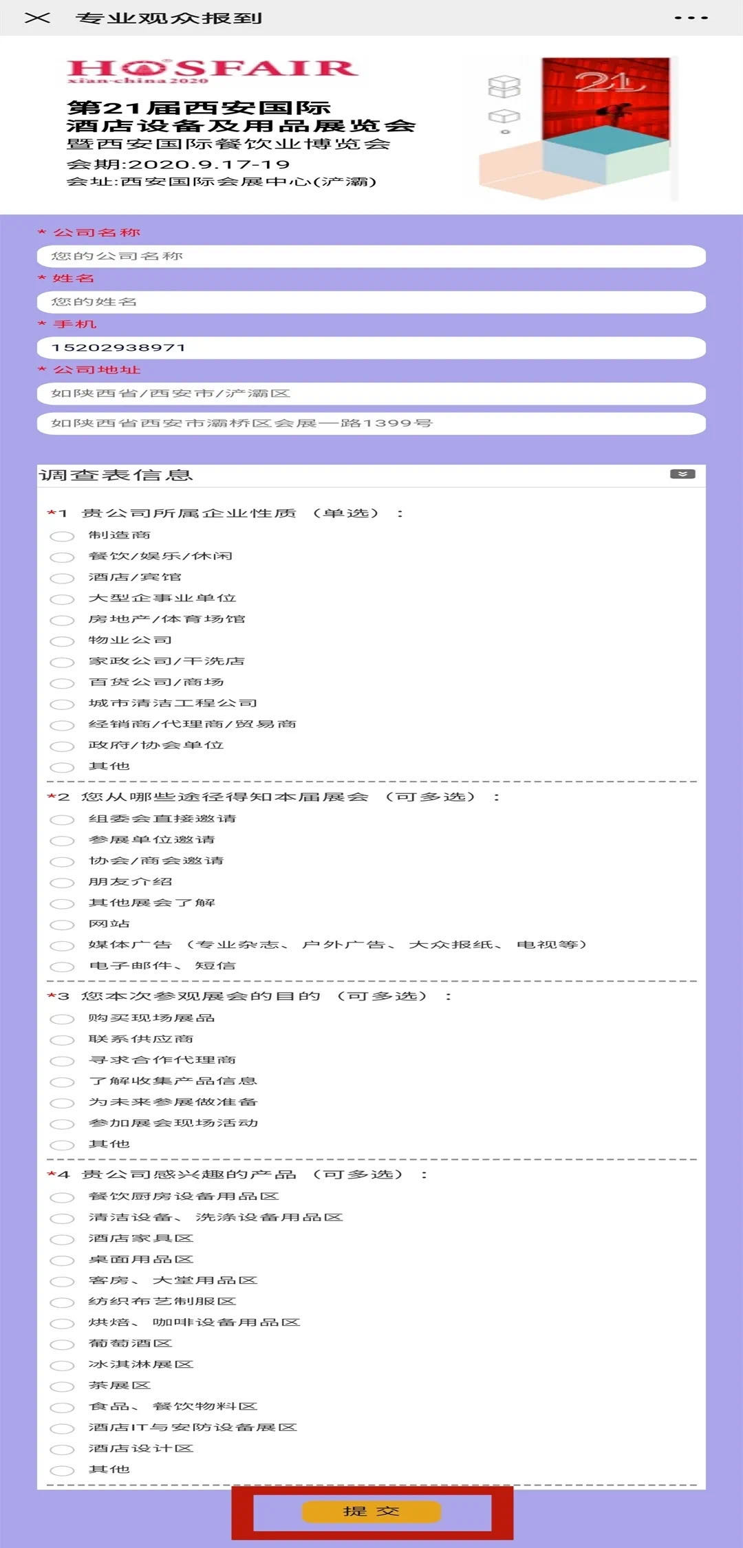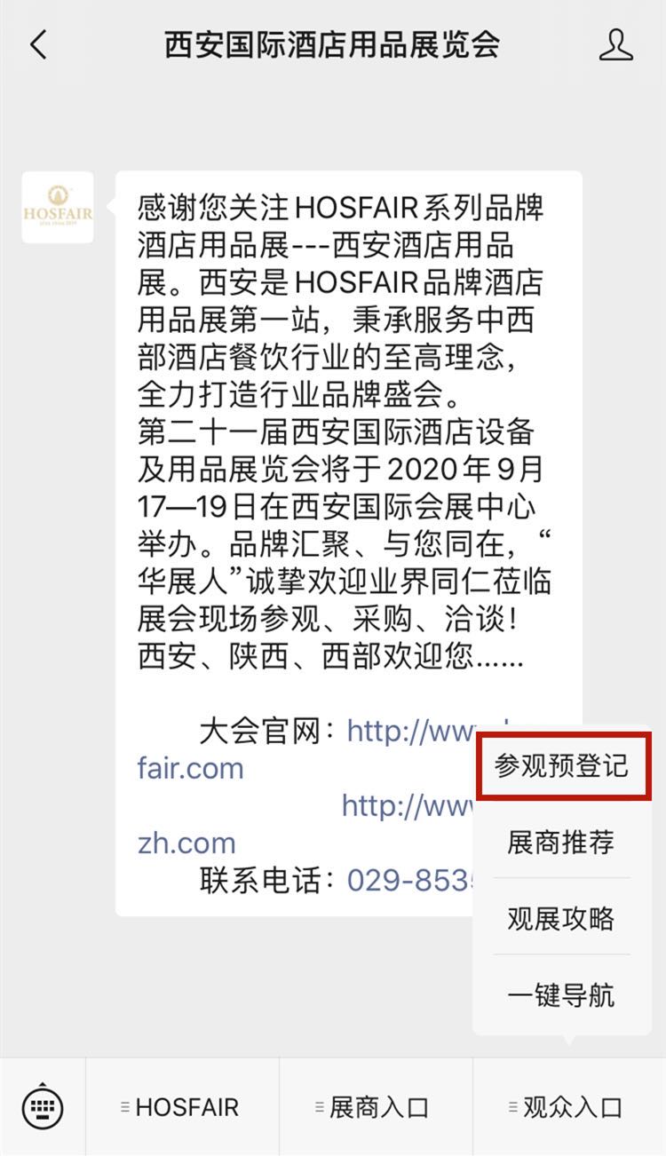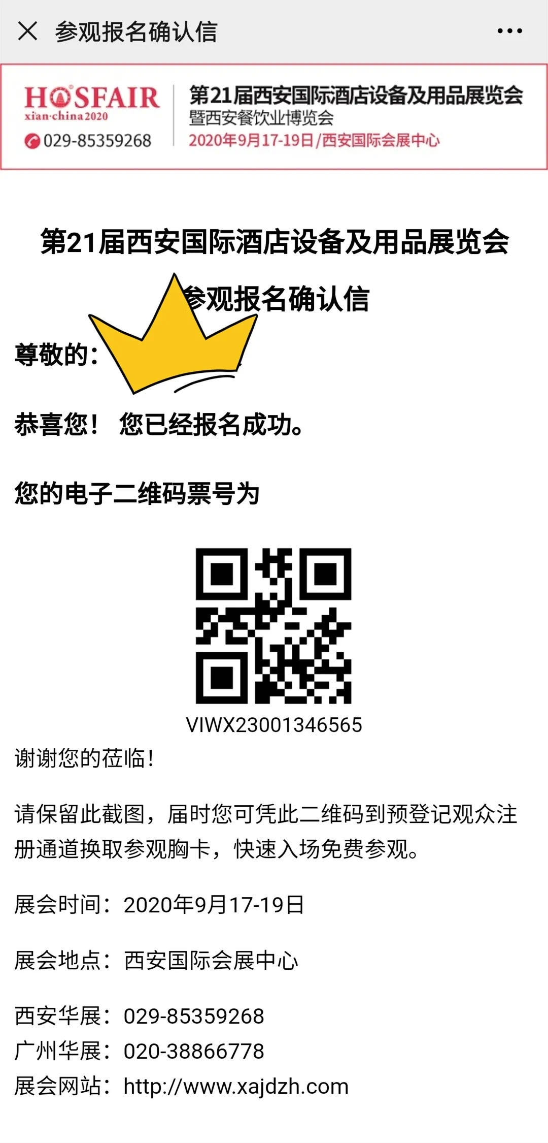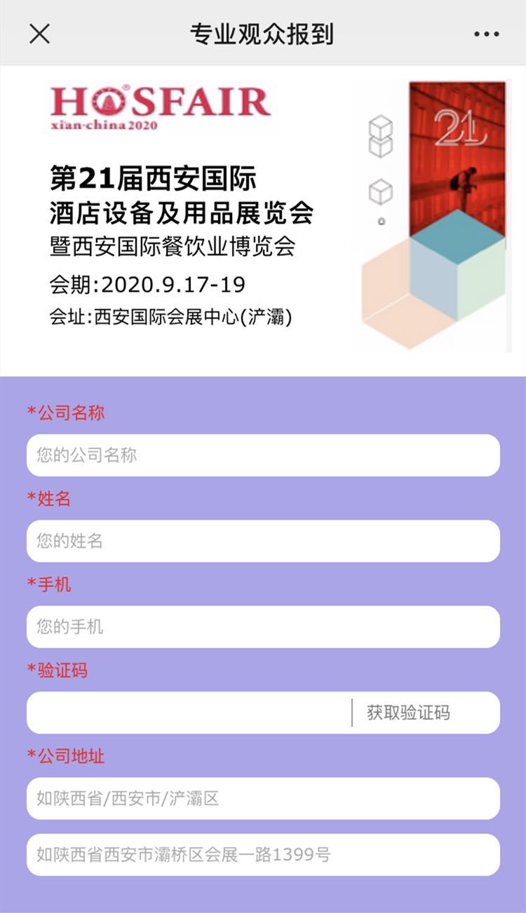 關注西安國際酒店用品展覽會——點擊右下方“觀眾入口”——點擊參觀預登記——填寫個人信息——獲取免費門票