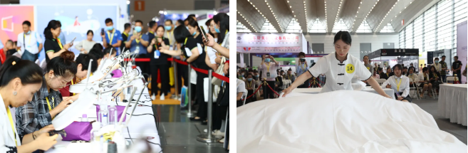 為進一步提升展會平臺作用,西安酒店用品展在開展三天期間,連續舉辦“雅蘭杯”陜西省旅游住宿業服務技能大賽客房鋪床及夜床創意大賽、第十二屆陜西省洗染專業職業技能競賽、第三屆中國調茶師技能大賽(MTDS3)西安分區賽等多場專業賽事及活動,推動行業高質量人才建設,促進職業技能交流與產業發展。