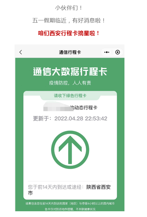 - 所有離市人員返回西安后,按行動(dòng)軌跡涉及城市落實(shí)相應(yīng)的核酸檢測(cè)和健康管理措施。市民在市內(nèi)活動(dòng)的,倡導(dǎo)盡量不走繞城高速,避免查驗(yàn)帶來不便。