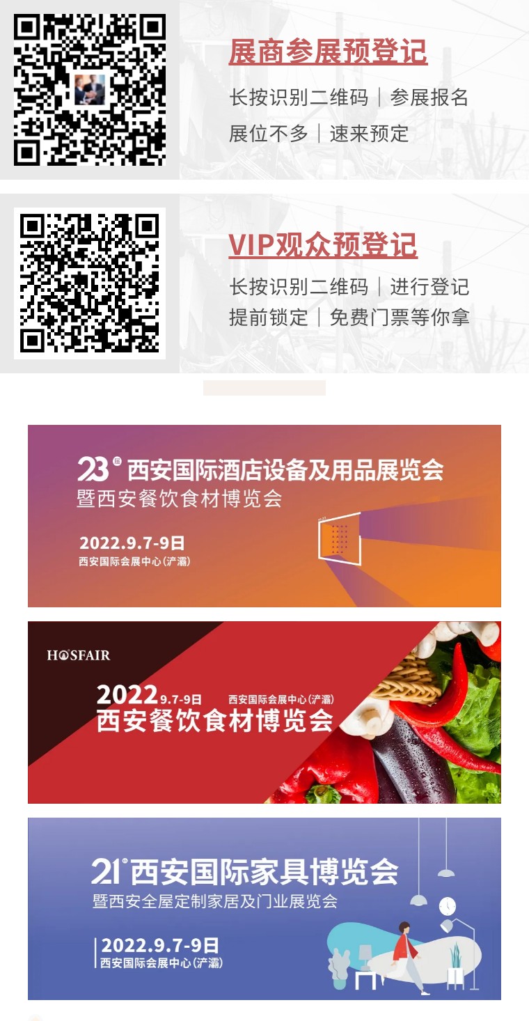 縱然受三年疫情的影響,持續的時間長且威力大,對酒店餐飲人帶來不小的沖擊,但目前高端酒店的扎推簽約亮相,表明西安這座中西部國家中心城市未來可期。疫情給旅游業打擊的同時,卻也帶來了新的機遇。酒店餐飲人應看到光明的前景,提前布局行業,及時調整適應市場,于困境中尋找轉機。2022第23屆西安國際酒店設備及用品展覽會將與您一起,攜手蓄力,在危機中尋求突破。