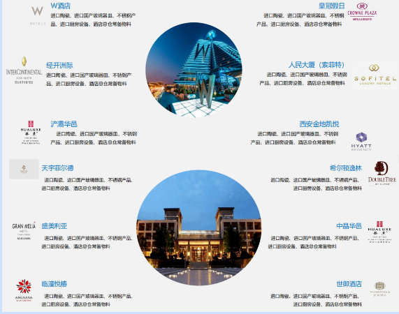 公司經(jīng)過幾十年的經(jīng)營已得到多家酒店的認(rèn)可和合作,如:陜西人民大廈(索菲特)酒店、W酒店、皇冠假日酒店、經(jīng)開洲酒店、希爾頓酒店、盛美利亞酒店、天宇菲爾德酒店、凱悅酒店、臨潼悅椿溫泉酒店等。