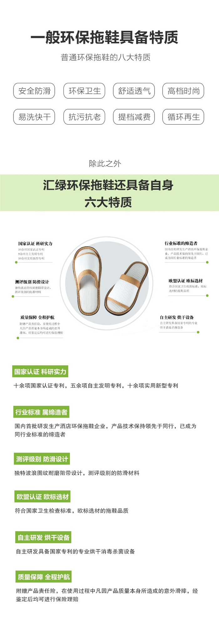 匯綠環保歷經多年的服務實踐和專業沉淀,以質量和技術為根本,在創新中不斷追求精益求精,深耕酒店環保拖鞋領域,五年磨一劍,現已成為酒店環保拖鞋領域的佼佼者。