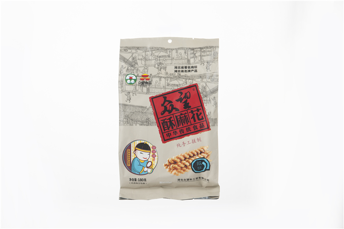 公司生產的眾望小麻花由于配方獨特,選料講究,生產設備精良,質量控制,檢測手段完善,產品質量優異,產品連續多年暢銷于國內市場并出口美國、歐洲、日本等地區。公司通過ISO9000質量體系認證及HACCP食品安全認證;2016年被湖北省進出口商檢局認定“三同”產品(即與出口產品同線、同標、同質)。眾望小麻花其突出特色是甘、爽、脆,好吃而不膩,多吃亦不上火,外形精致,小巧玲瓏,根根均勻,金黃醒目,既可休閑吃,又可做成菜肴,下火鍋,佐酒伴茶等。成為國內知名火鍋餐飲供應商,非常符合現代人的口感,是一種上好的傳統食品。