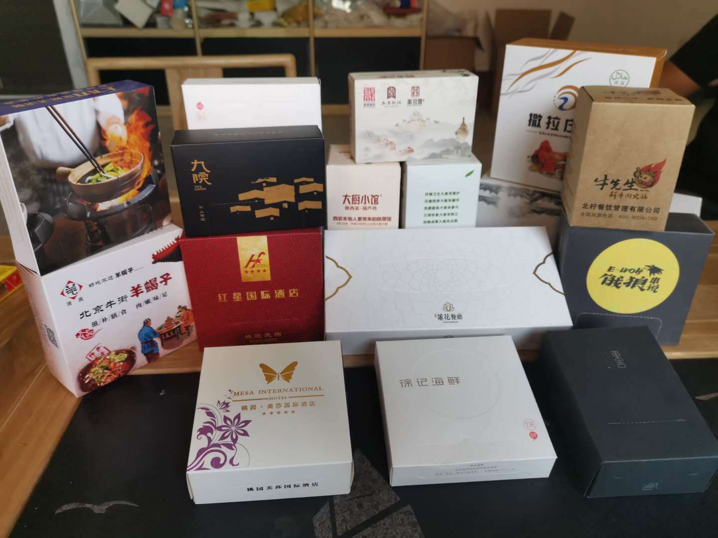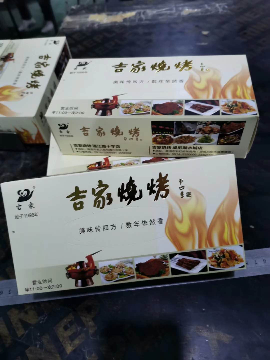本公司主要生產盒抽紙、錢夾紙、印標紙、熱敏收銀紙、紙杯、打包袋、手提袋、無碳復寫、消毒毛巾、筷子套、點菜單、酒店、賓館 、餐飲、娛樂、學校、醫院等事業單位定制廣告盒抽。