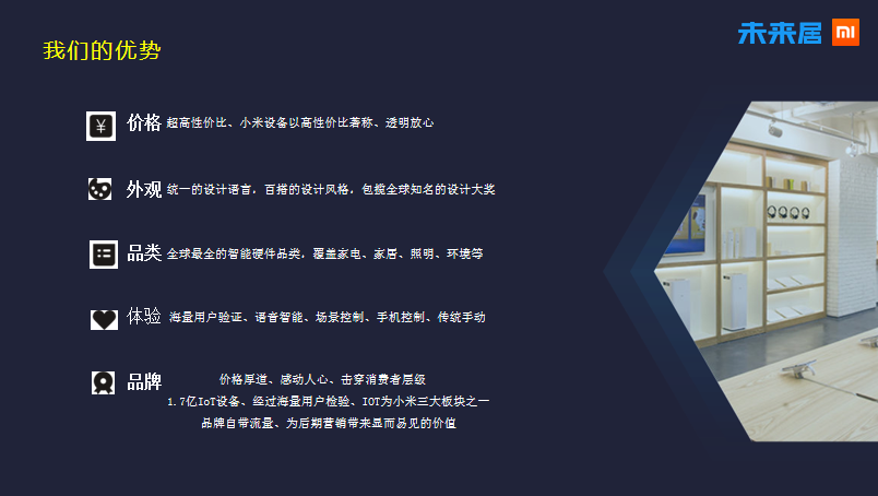 小米生態鏈公司-未來居是專注于企業智能化服務的智能空間運營商。在深入結合酒店、公寓、地產等行業場景上,充分利用小米 AIoT資源致力于為各企業打造一站式商務智能空間,提供包括設計、定制、調試部署、運營管理等一站式智能化服務。