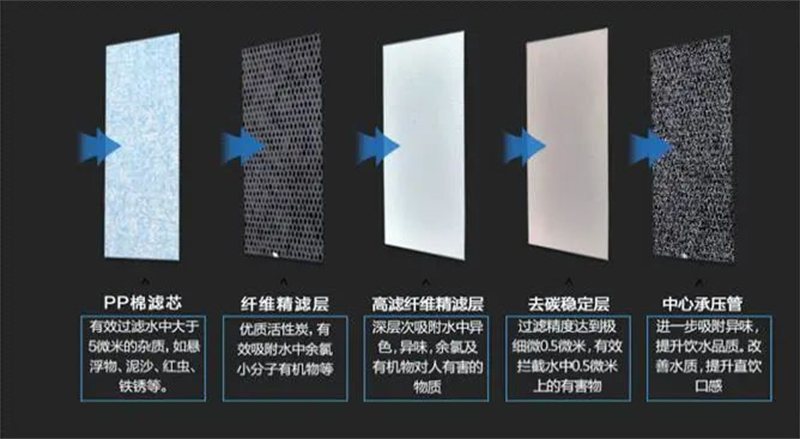 1、核心技術采用碳纖維復合濾芯,過濾孔徑達到0.5微米,弗端仕獨有的抑菌成分,能有效去除水中的污染物及各種細菌,