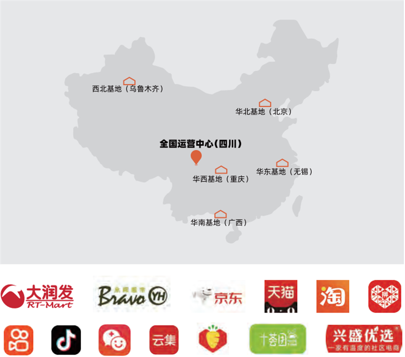 若禺集團已形成全渠道零售:深耕華北、東北、華東、華中、西南、西北、華南等全方位分銷,實現全國范圍渠道布局,并逐步向海外市場發展;旗下品牌進駐了永輝集團、北京物美等全國性連鎖永輝超市和上百家區域性KA商超;并覆蓋了包括淘寶、京東、拼多多等傳統電商平臺和數十家社交平臺,多個電商平臺已強勢成為類目TOP品牌。