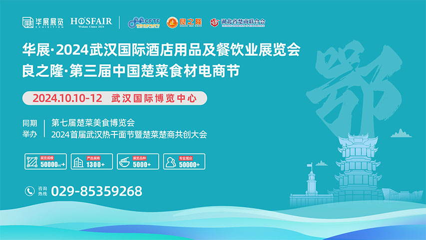 2024年10月10-12日,華展展覽將再度攜手武漢良之隆,在武漢國際博覽中心(A館)舉辦“華展·2024武漢國際酒店用品及餐飲業展覽會&良之隆·第三屆中國楚菜食材電商節”,開啟一場助力各地廠商開拓、擴大華中市場,促進酒店用品、餐飲食材供需對接深度交流的盛會,新的機遇、新的驚喜,敬請期待!
